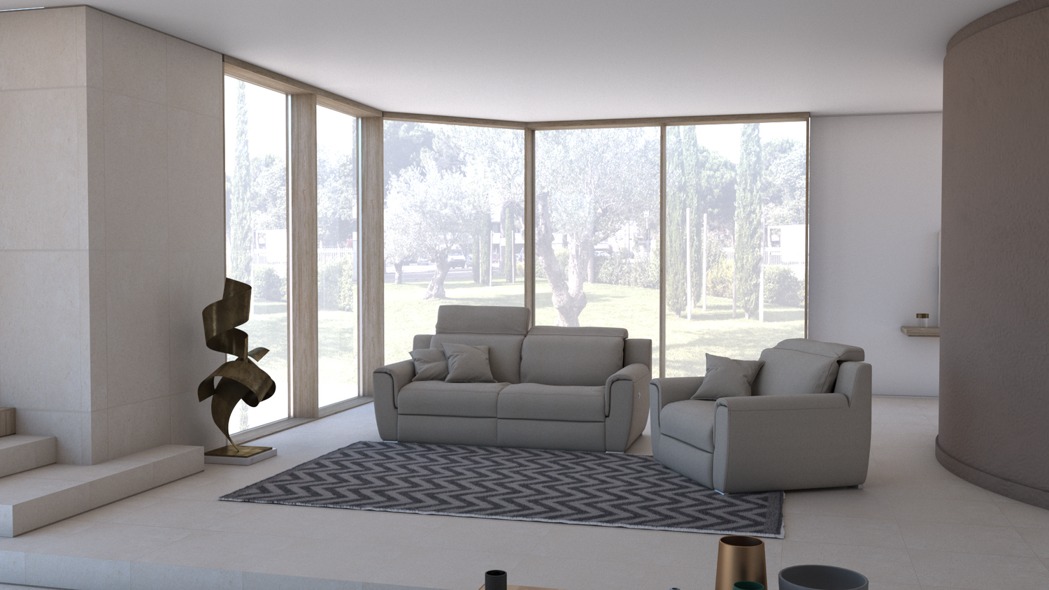 - Meccanismo in metallo: relax motorizzato zero-wall con pulsantiere su entrambe le sedute ;