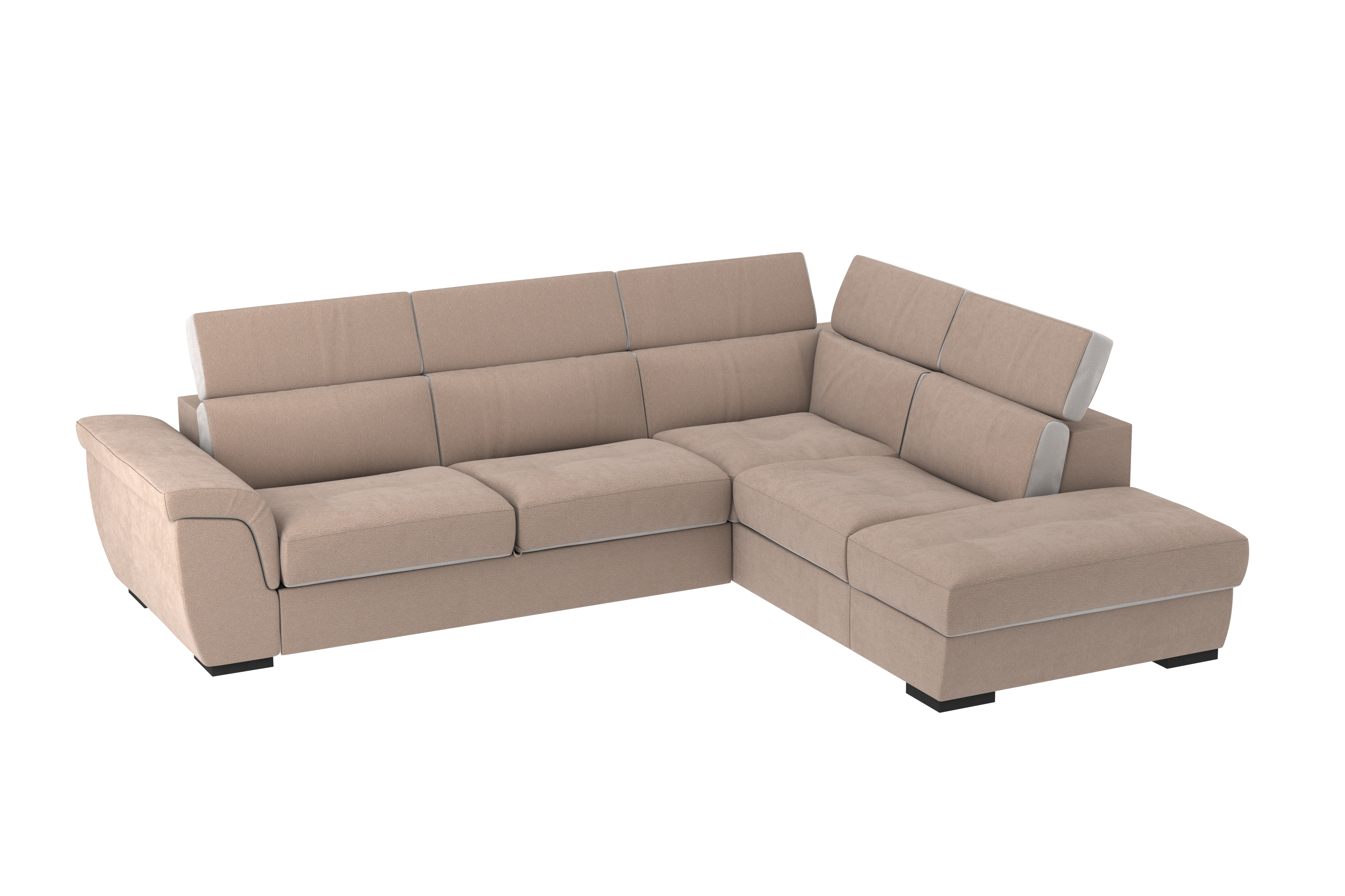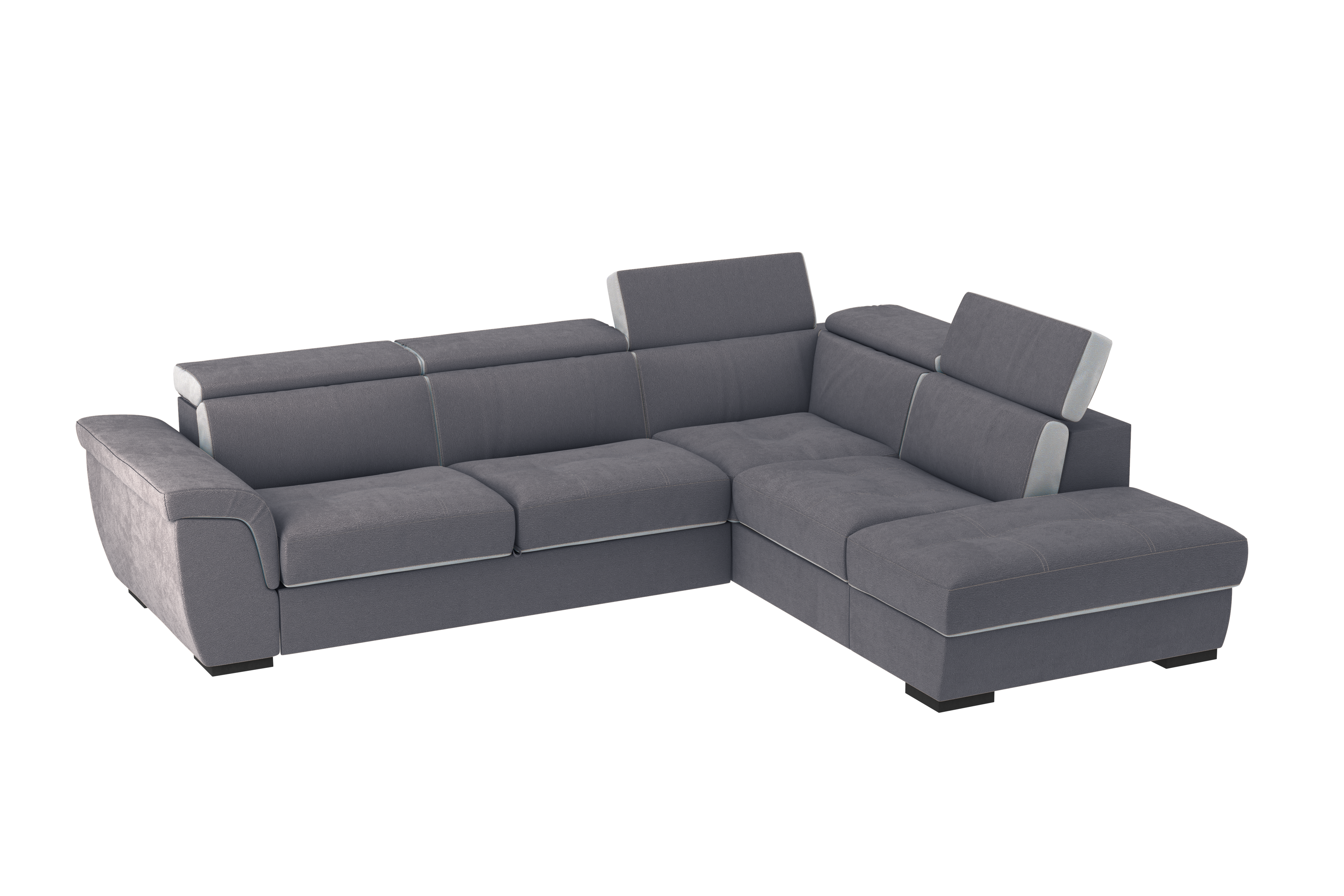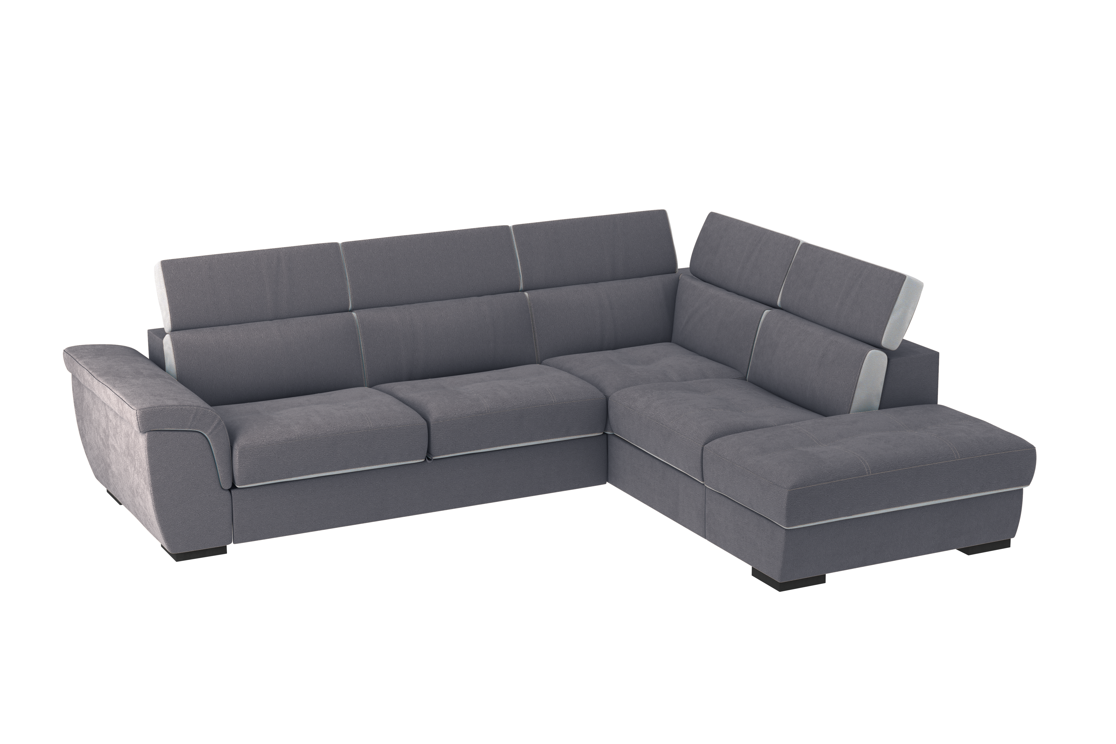• Descrizione prodotto: questo divano angolare è reversibile il che significa che l'angolo puo’ essere posizionato sia a destra che a sinistra del divano. È perfetto per i grandi ambienti ed è esteticamente accattivante. È dotato di materasso ad estrazione complanare adatto per riposare le gambe durante i vostri momenti di relax, oppure a trasformarsi insieme alle sedute ed alla chaise longue in un letto rapido per ospiti dell'ultimo minuto. È dotato di una comodo pouf terminale munito di un ampio contenitore interno utile a riporre cuscini, coperte, giocattoli e quant'altro. Le sue dimensioni massime d'ingombro sono 288x240cm e le sedute sono profonde ben 58cm. area letto 210x118cm. È dotato di comodi poggiatesta regolabili in diverse posizioni fino a quella verticale.