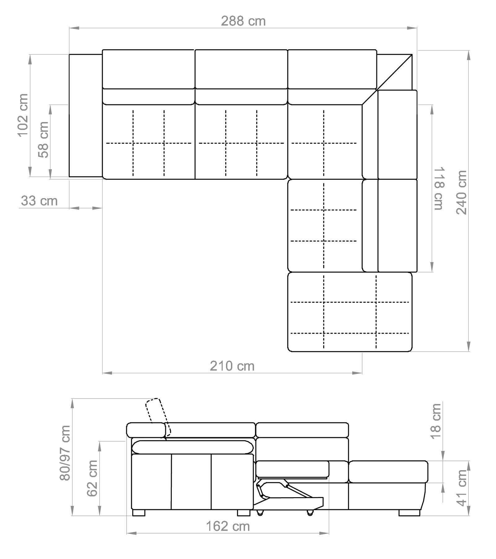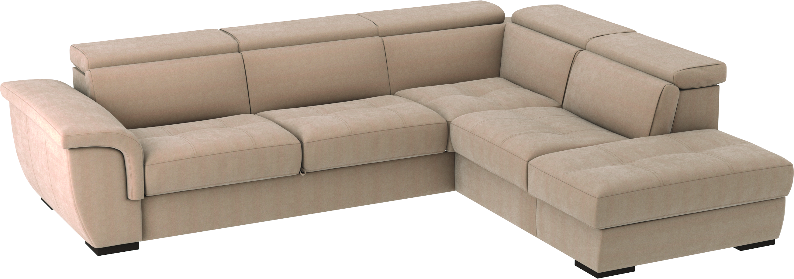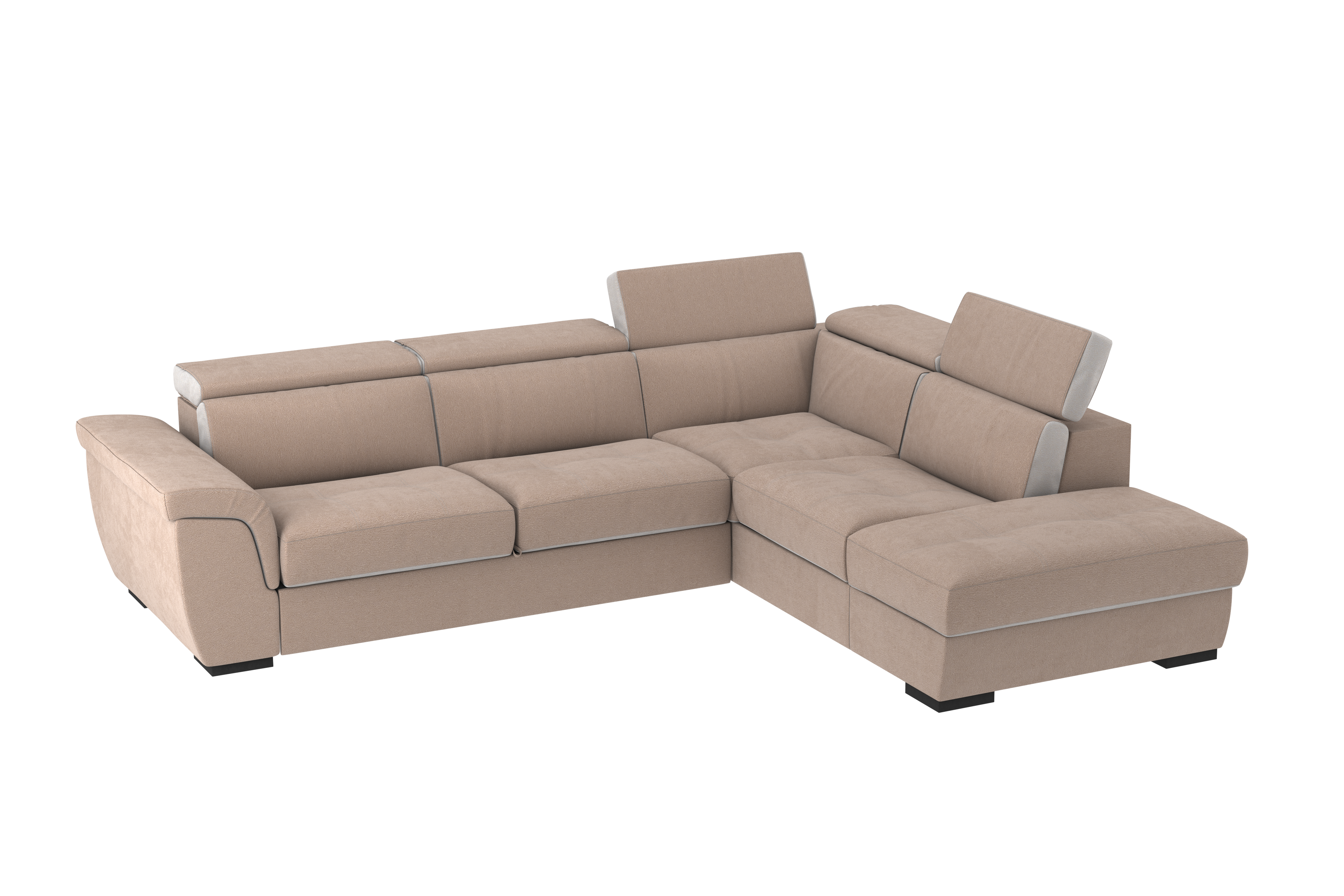 • Descrizione prodotto: questo divano angolare è reversibile il che significa che l'angolo puo’ essere posizionato sia a destra che a sinistra del divano. È perfetto per i grandi ambienti ed è esteticamente accattivante. È dotato di materasso ad estrazione complanare adatto per riposare le gambe durante i vostri momenti di relax, oppure a trasformarsi insieme alle sedute ed alla chaise longue in un letto rapido per ospiti dell'ultimo minuto. È dotato di una comodo pouf terminale munito di un ampio contenitore interno utile a riporre cuscini, coperte, giocattoli e quant'altro. Le sue dimensioni massime d'ingombro sono 288x240cm e le sedute sono profonde ben 58cm. area letto 210x118cm. È dotato di comodi poggiatesta regolabili in diverse posizioni fino a quella verticale.