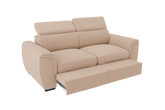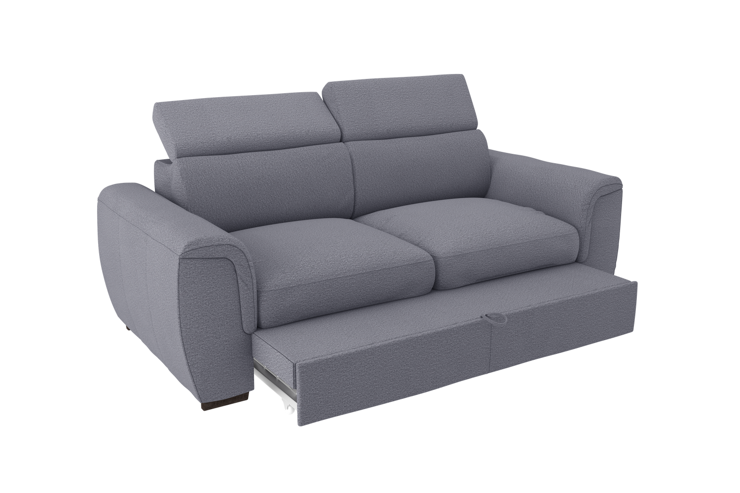 Un divano 2 posti con pouf estraibile dallo stile moderno e dalle dimensioni contenute. Il un meccanismo inferiore scorrevole che consente di estrarre un ripiano che allineandosi alla seduta crea un comodo supporto poggiapiedi od un piccolo ripiano letto per bambini. Il divano è prodotto con tessuto di alta qualità resistente all’abrasione. Interamente prodotto in UE.