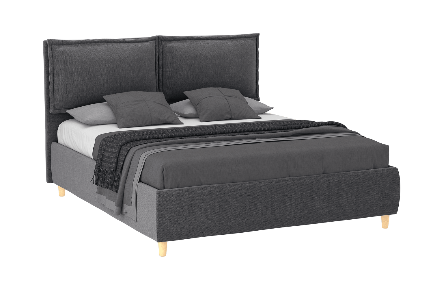 - Product description: this bed with warm, enveloping and well-finished modern lines is equipped with a large container inside suitable for storing cushions, blankets, toys and so on. The base is made entirely of wood without curvature to allow even those with postural problems to obtain a neutral buoyancy. Its maximum overall dimensions are 173x214cm while the height of the headboard is 117cm. the suitable mattress for this bed is 160x200cm with the thickness you want.