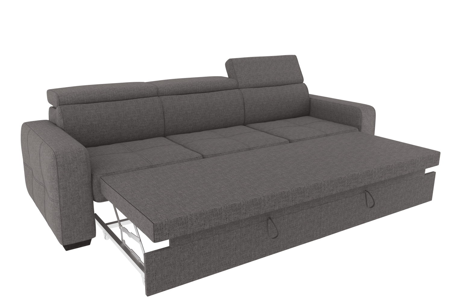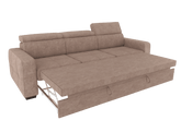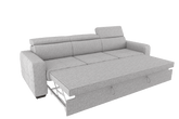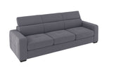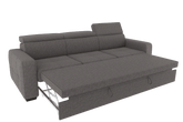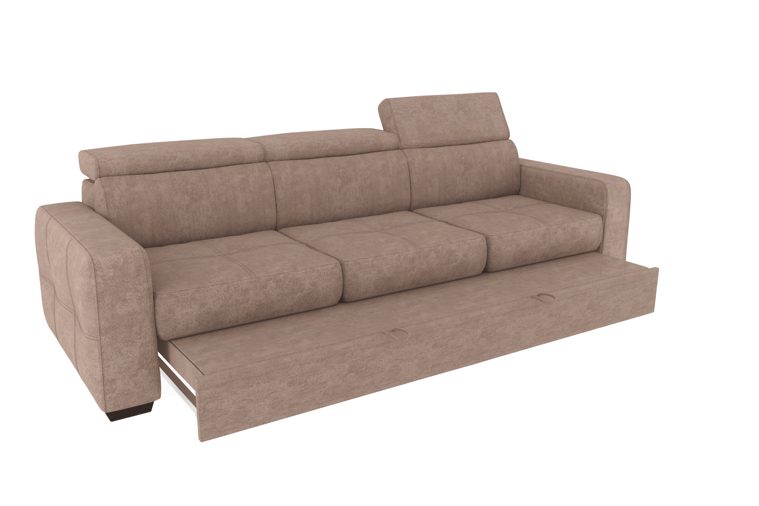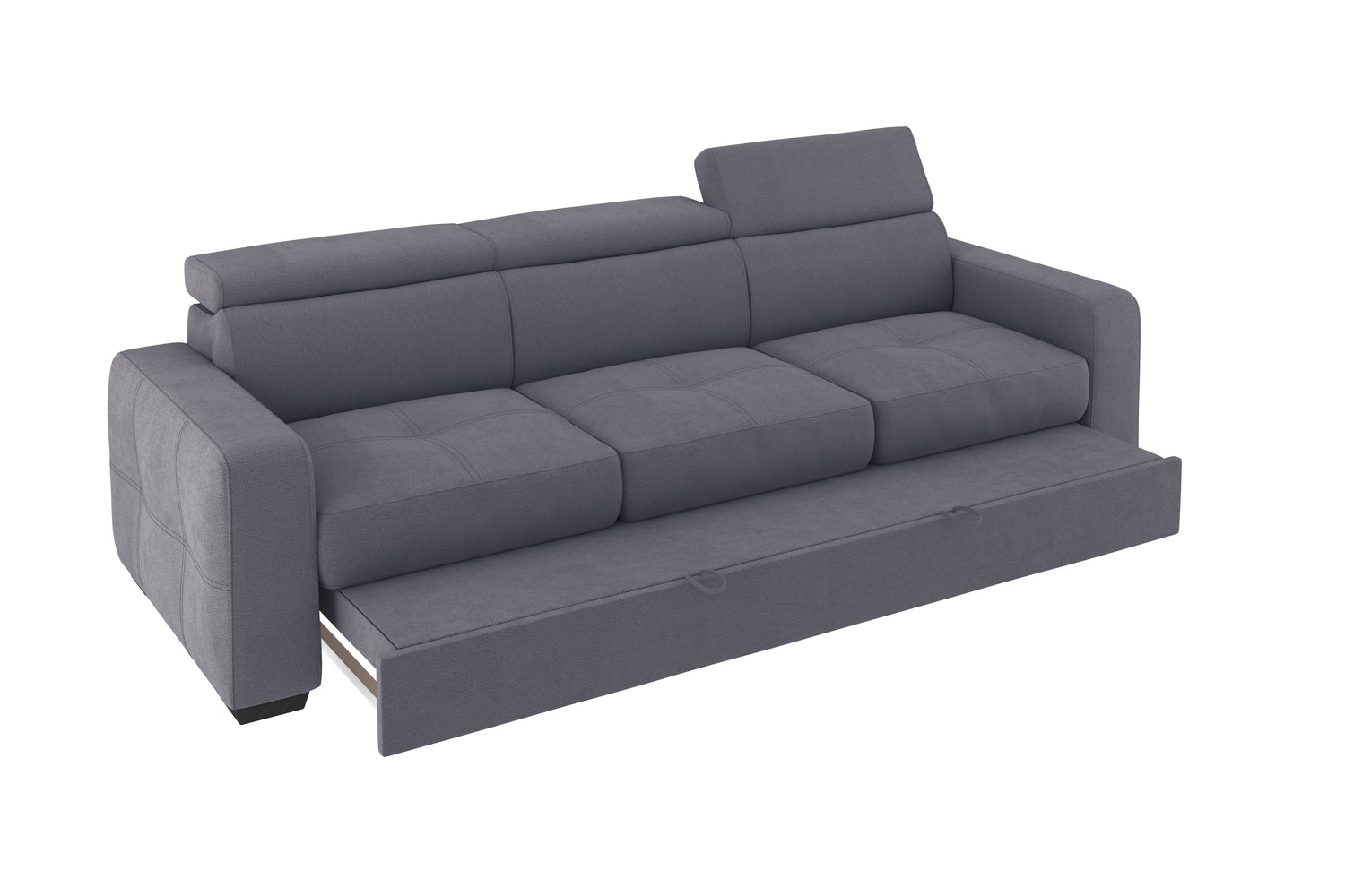 Un divano 3 posti con grande pouf estraibile dallo stile moderno e dalle dimensioni generose. Il un meccanismo inferiore scorrevole, consente di estrarre un ripiano che allineandosi alla seduta crea un’ampia superfice letto. Il divano è prodotto con tessuto di alta qualità resistente all’abrasione. Interamente prodotto in UE.