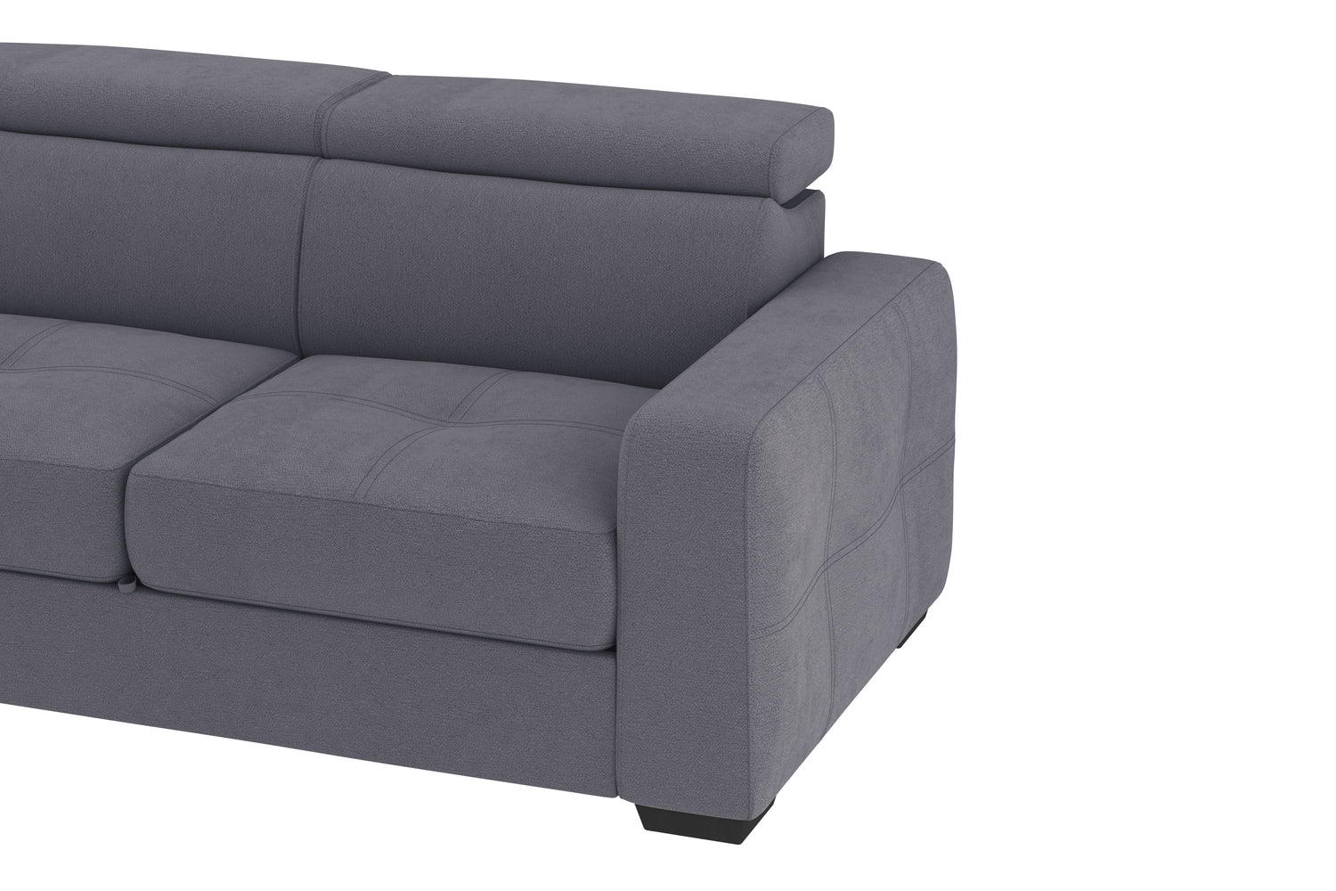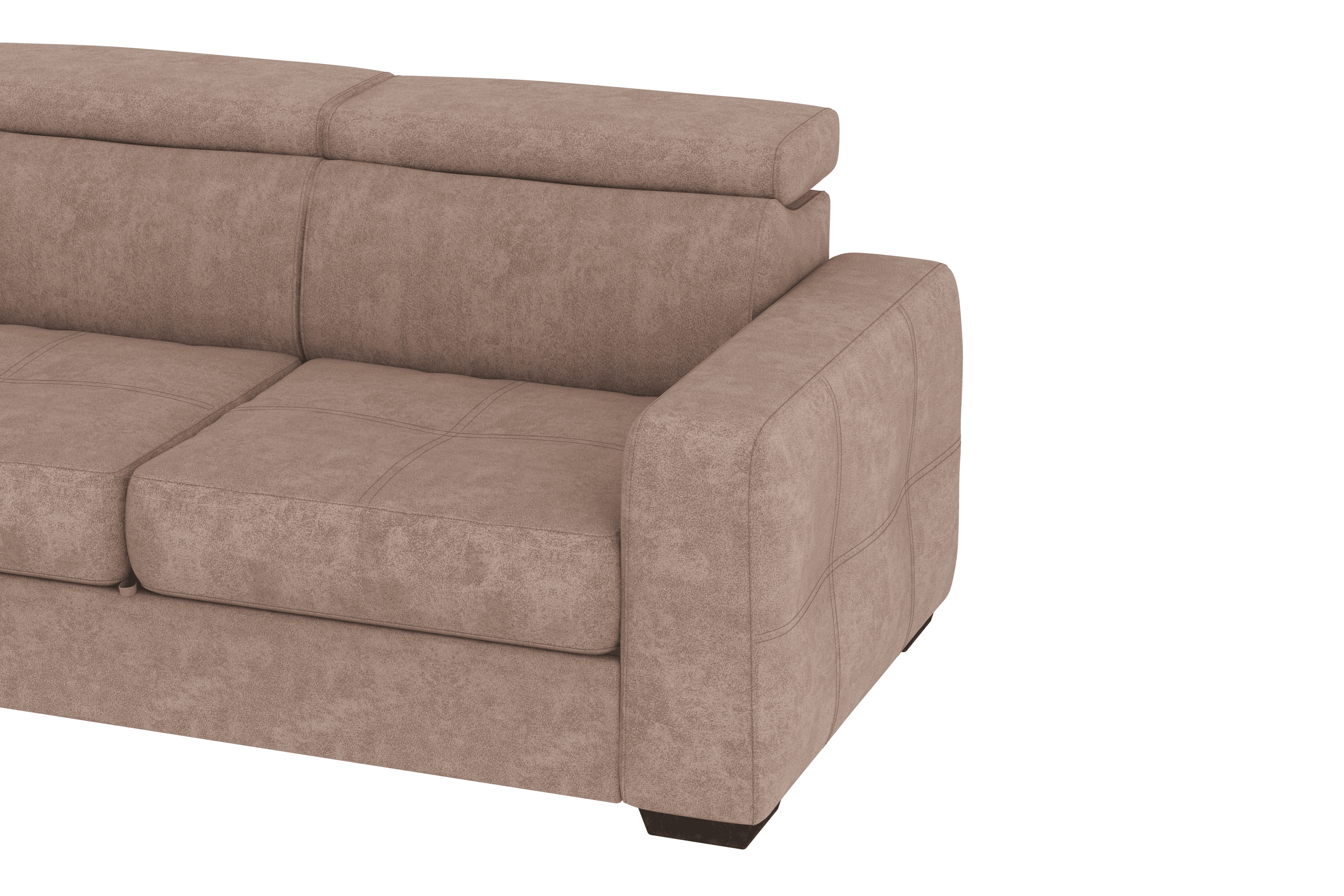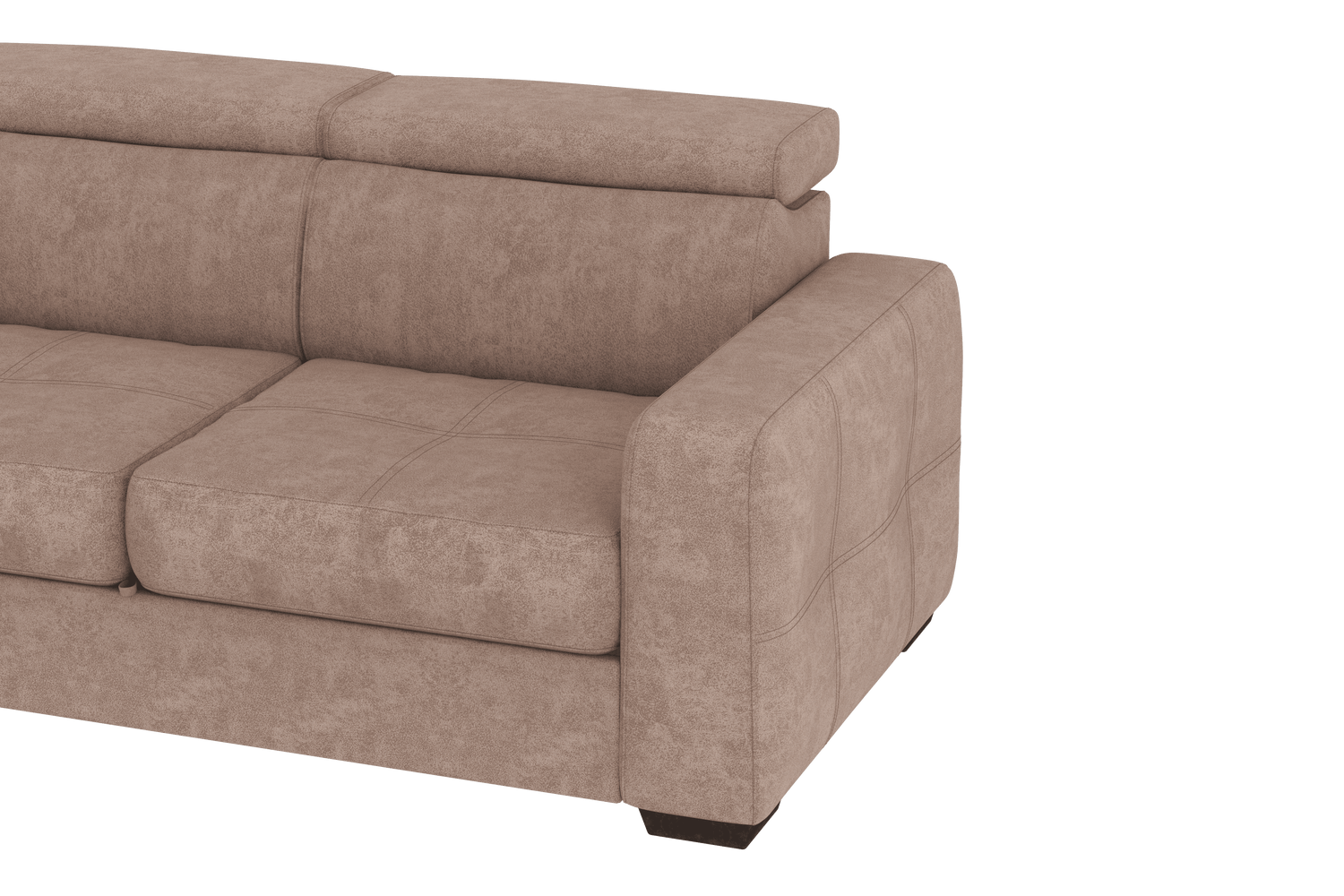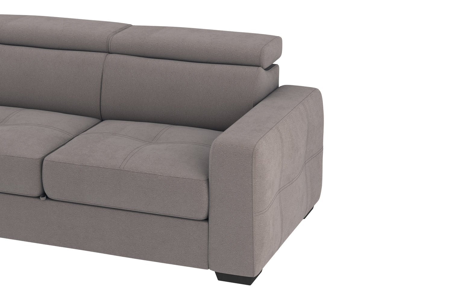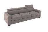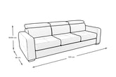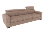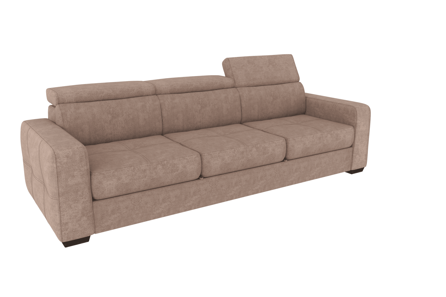 Il Divano LIPSIA 3 posti con grande pouf estraibile, offre il massimo confort grazie ai soffici poggiareni integrati alla struttura, ai poggiatesta reclinabili ed alla seduta, realizzati in poliuretano espanso di alta qualità trapuntata con cuciture in tinta. Il bracciolo dalle linee semplici e leggermente bombate ed impunturate, gli consentono di essere collocato in qualsiasi ambiente sia classico che moderno.